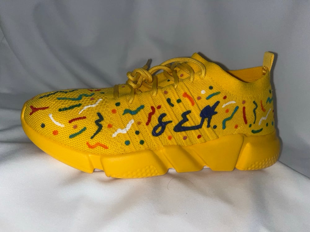 the 4th original sneaker made by the artist “704se” Sam Everett. this colorway is named “crayola” resembling the box of the famous crayon company.